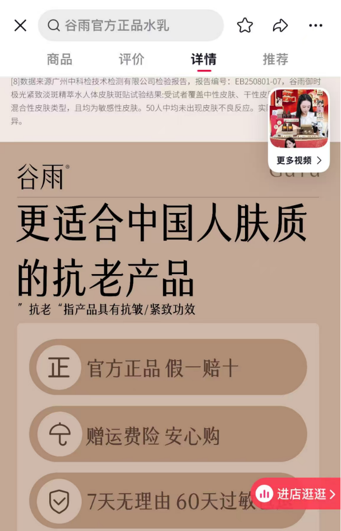 而在此前两天,谷雨官方旗舰店抗老直播已发布秦岚代言视频:“我拒绝不易耐受的破坏式抗老,谷雨山参抗老系列无需建立耐受。”