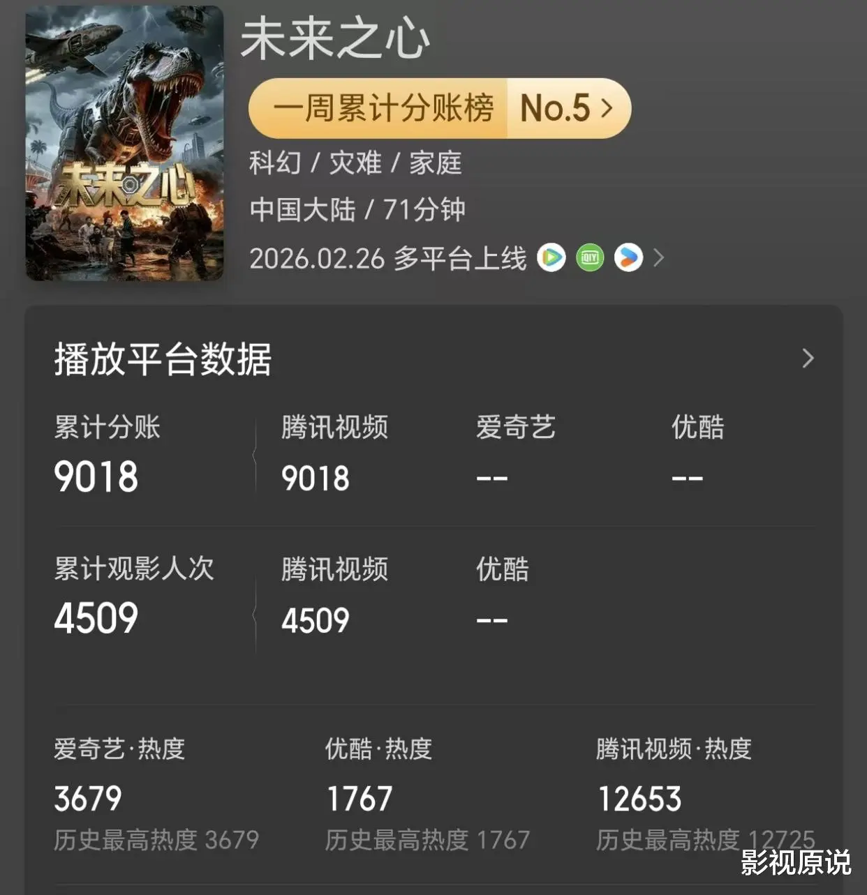 国产科幻片《未来之心》播出,网上全是一星差评,分账票房不到1万人民币。