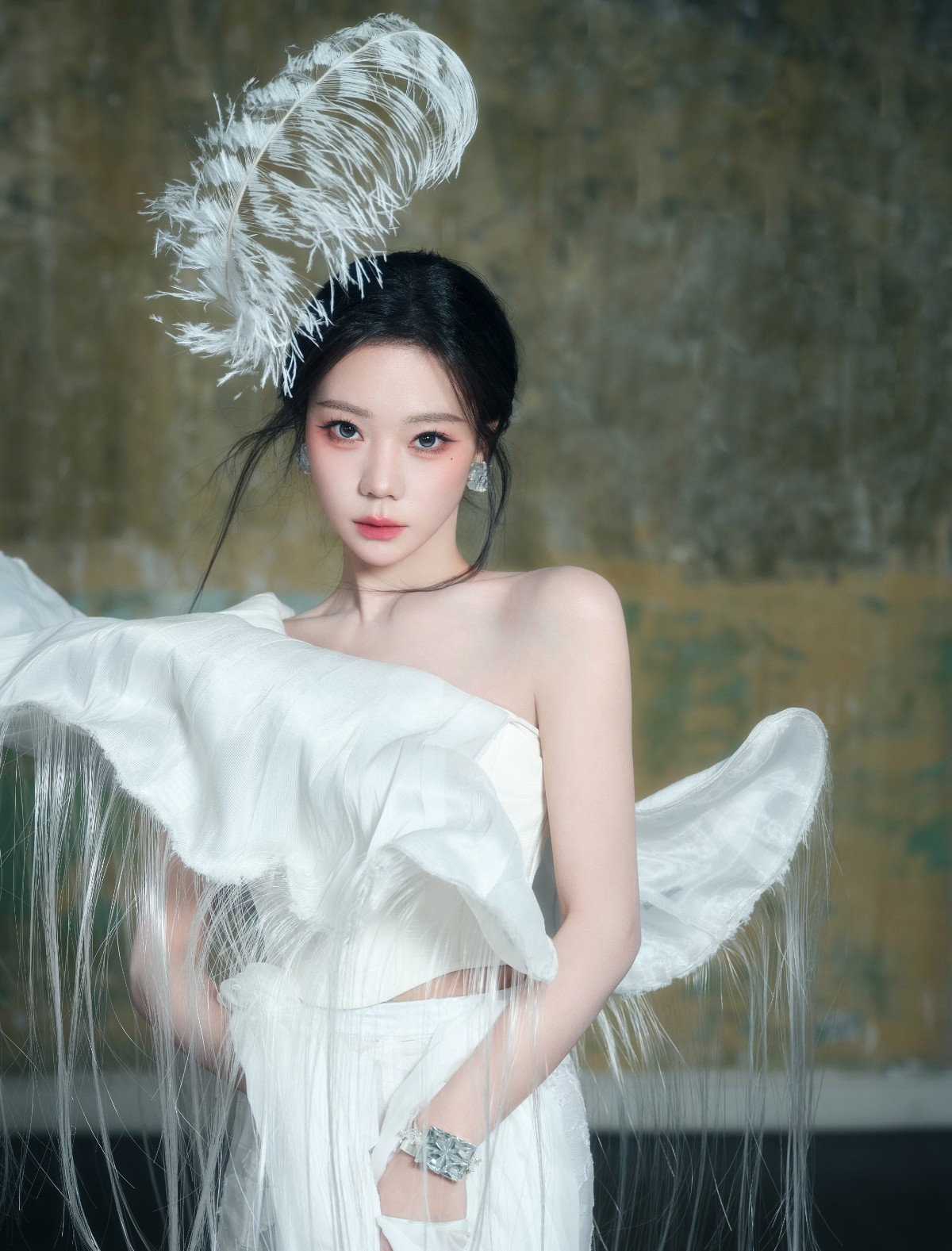 当老墙开始掉渣,时光却悄悄开了美颜——张紫宁就站在那片斑驳的墙面前,一身纯白如初雪降临,仿佛从上世纪的老电影里走出来,又一脚踩进了未来主义的秀场。这不是简单的拍照,而是一场关于“美还能怎么玩”的大胆实验。
