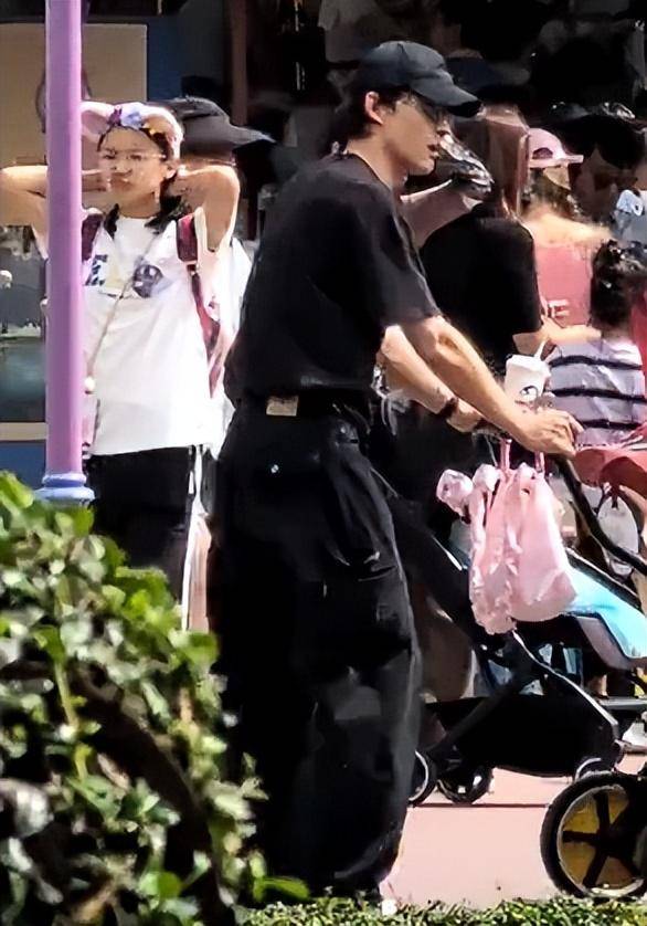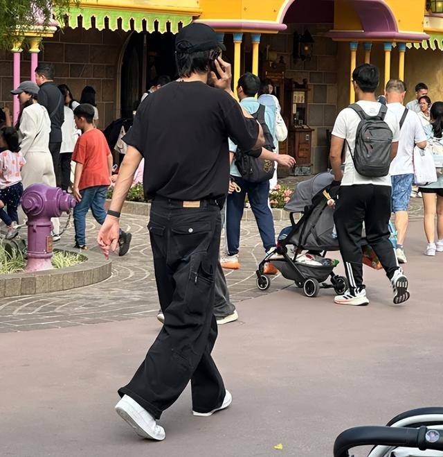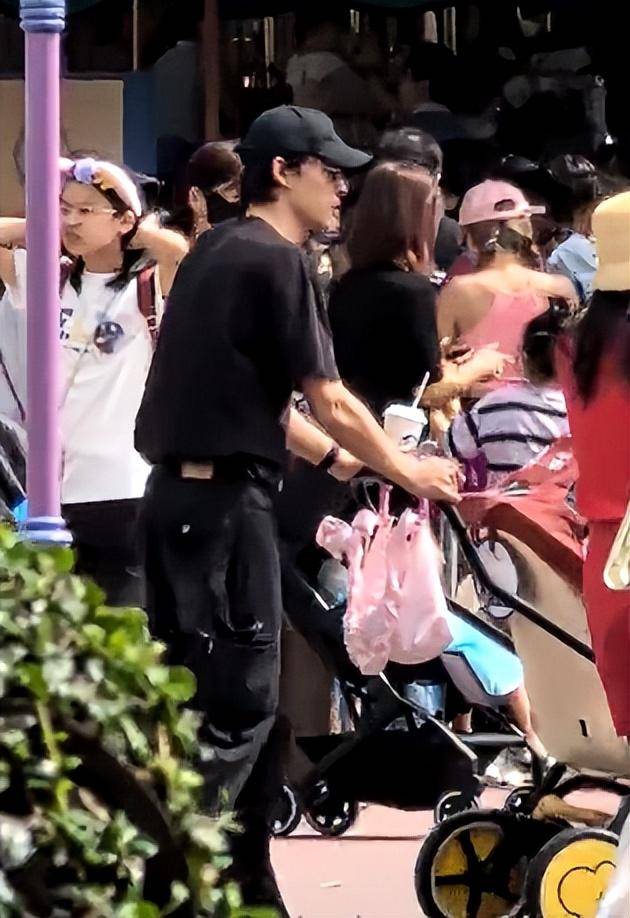 他主动包揽了所有体力活,推着婴儿车,手里还拎着大包小包的迪士尼周边,看得出来是做足了准备。