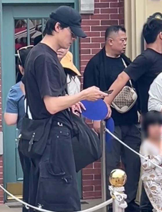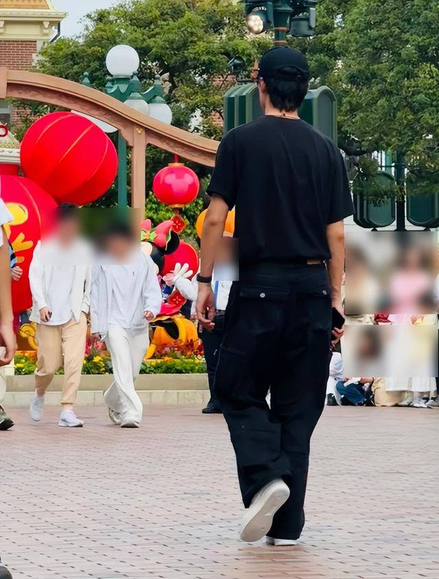 他穿了一身黑色休闲装,头戴黑色棒球帽,184cm的身高在人群中很是显眼,却全程没戴口罩,大方出镜却又低调内敛。