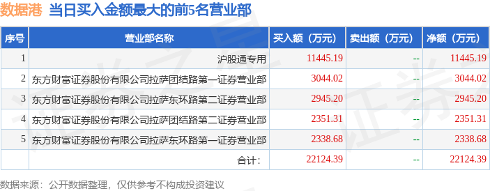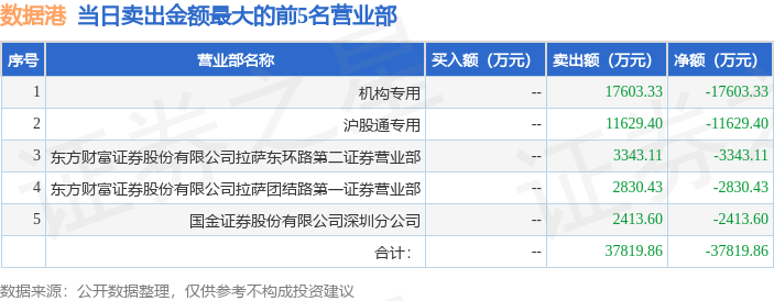 证券之星消息广州股票配资公司,沪深交易所2025年9月4日公布的交易公开信息显示,数据港(603881)因有价格涨跌幅限制的日收盘价格跌幅偏离值达到7%的前五只证券登上龙虎榜。此次是近5个交易日内第1次上榜。